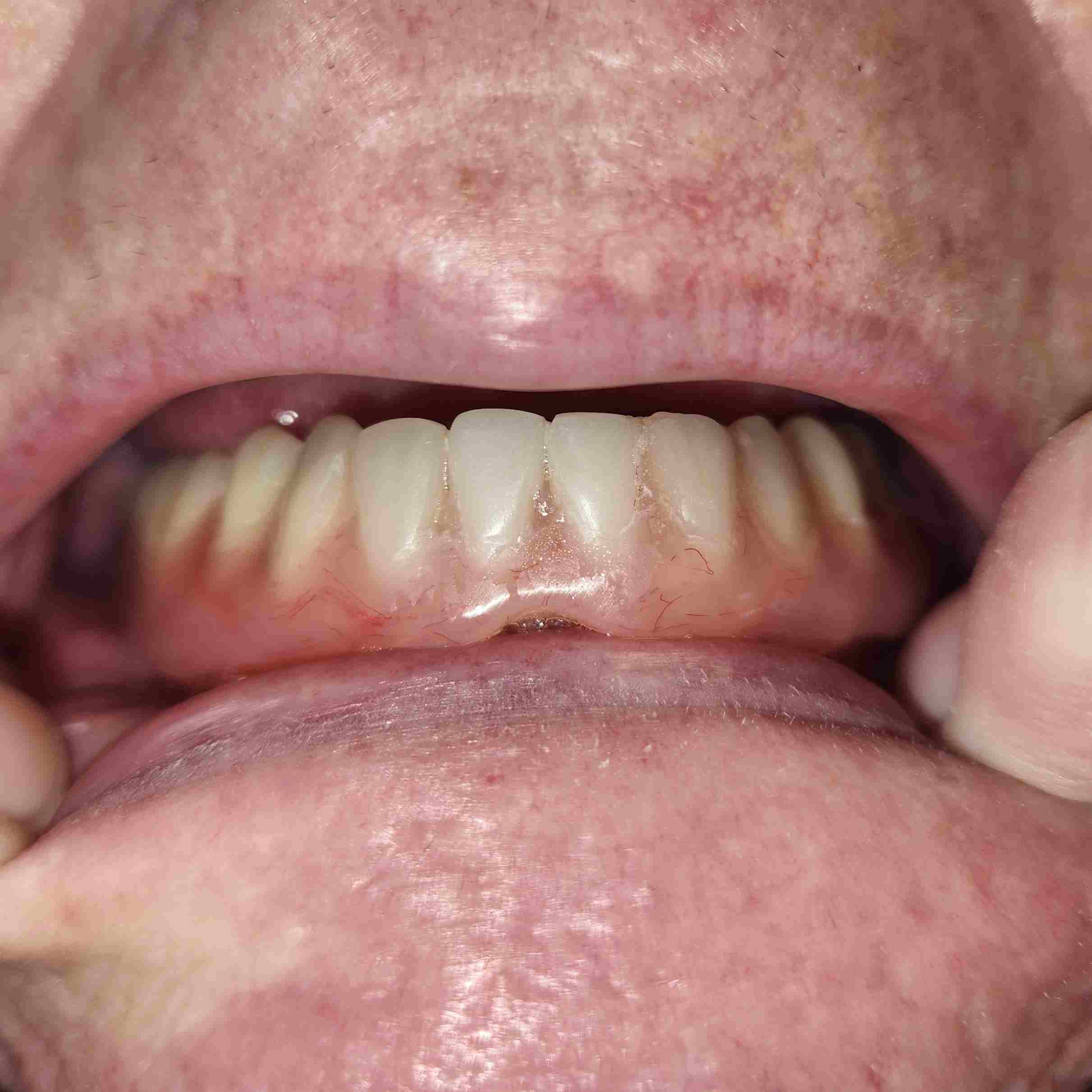 Once the patient has learned to use the training denture we then make a stronger denture with a metal substructure to keep the denture from breaking. Often, if there are enough roots left to support the denture you may be able to make the second metal supported denture with out a palate so that you can taste your food again. You can keep the training denture as a spare just in case you lose or break the other one.
