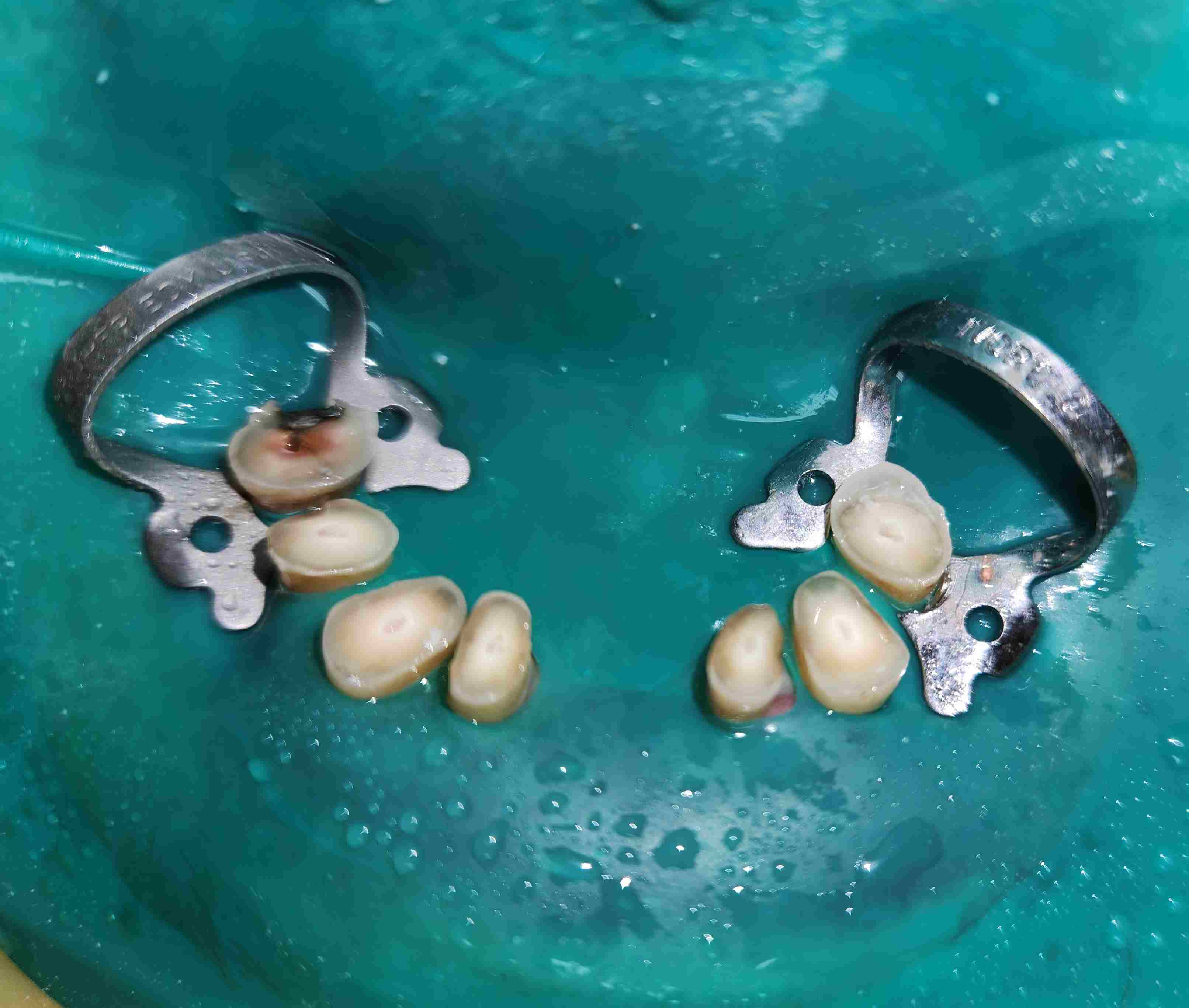 If we start to cut the crown and you feel it then we will numb the tooth. We usually put a special rubber mask around the tooth to keep it sterile and to keep things from getting into your mouth. The vital pulpotomy is a procedure where after cutting the crown off and exposing the nerve you remove the top 5 millimeters or 1/8 of an inch of the nerve. You then allow the nerve tissue to clot and then sterilize the top of the nerve tissue so that there is no bacterial contamination. There are a number of solutions that will sterilize this area, but we use ozone because it is a very powerful sterilizing agent that only uses oxygen. We sterilize the nerve tissue for about two minutes and then place a special material over the nerve that allows the nerve to heal thereby preserving healthy nerve tissue. We then put a filling over the medicament to seal the tooth. This technique only cost about $100-200 more than the cost of extracting the tooth.